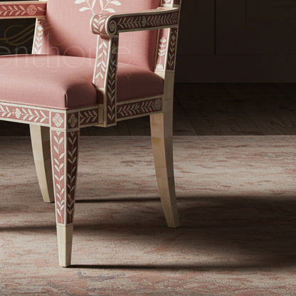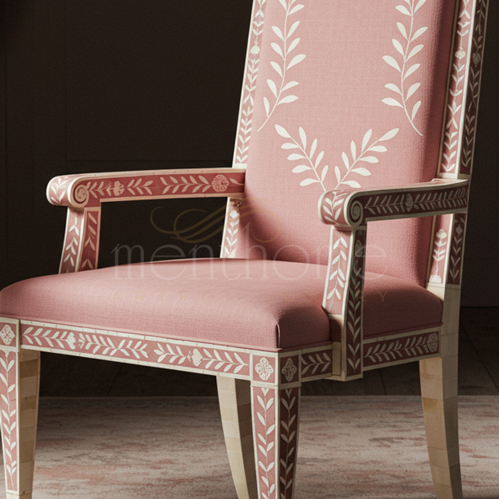 Elegant Inlay Armchair with Pink Upholstery | Luxury Handmade Chair