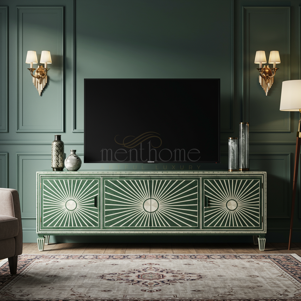 Emerald Radiance Inlay TV Cabinet | Luxury Handmade TV Cabinet