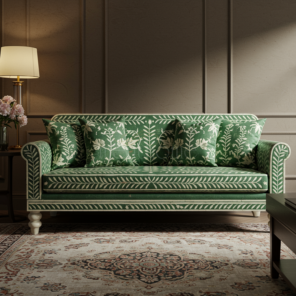 Green Botanical Inlay Sofa | Luxury Handmade Sofa