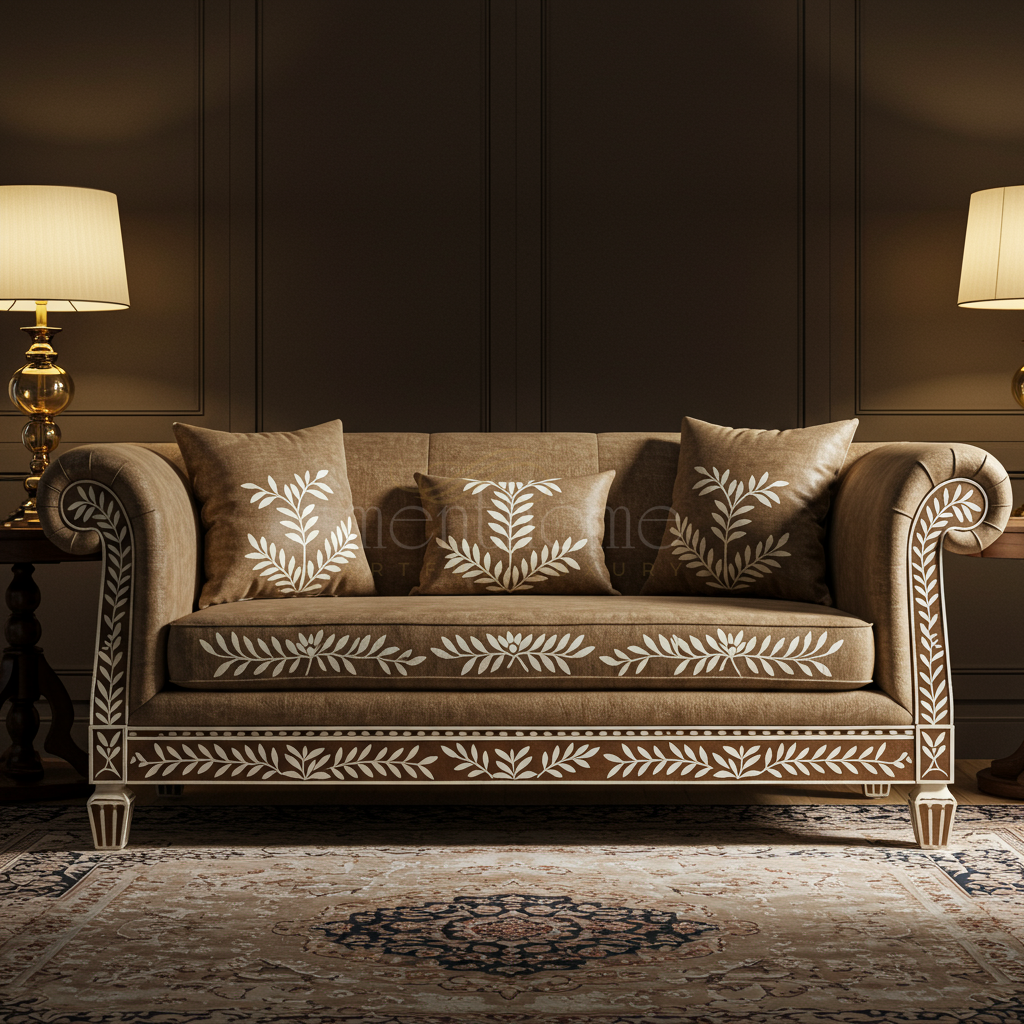 Luxury Inlay Sofa with Elegant Floral Detailing | Luxury Handmade Sofa