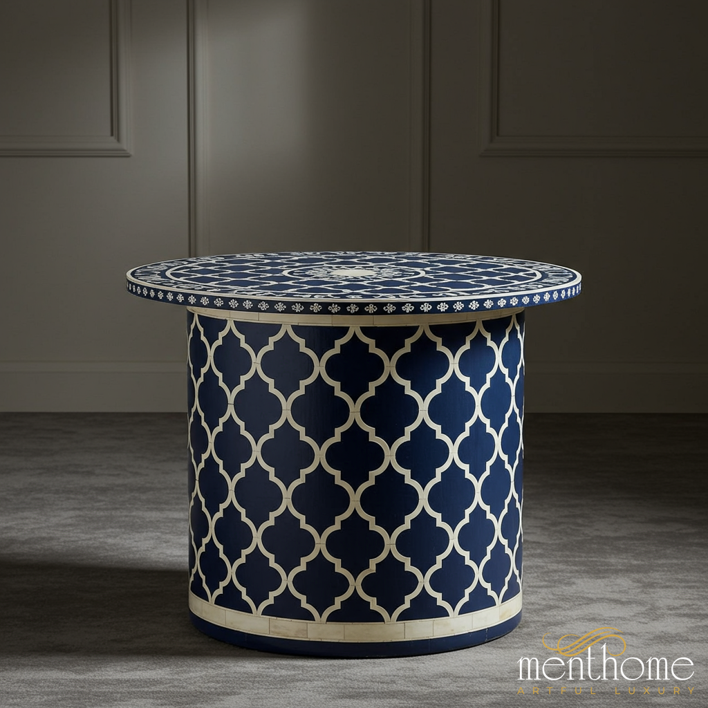 طاولة جانبية مستديرة بنقوش مغربية | طاولة قهوة فاخرة مصنوعة يدويًا