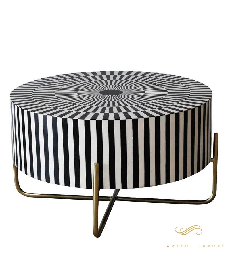 طاولة قهوة فاخرة مصنوعة يدويًا بتصميم حمار وحشي مطعّمة بعظام باللونين الأبيض والأسود