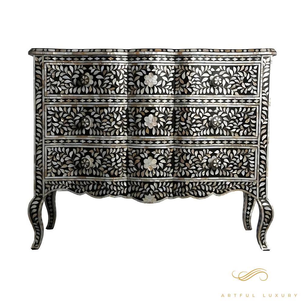خزانة ملابس فاخرة مصنوعة يدويًا بتسعة أدراج من خشب الماموث الأسود
