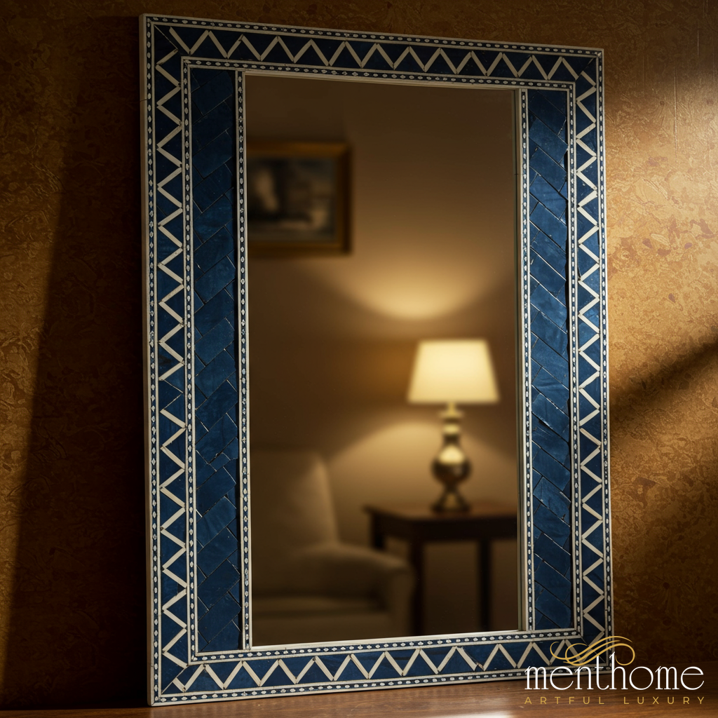 مرآة حائط مزخرفة مصنوعة يدويًا من الفسيفساء الزرقاء | مرآة فاخرة مصنوعة يدويًا