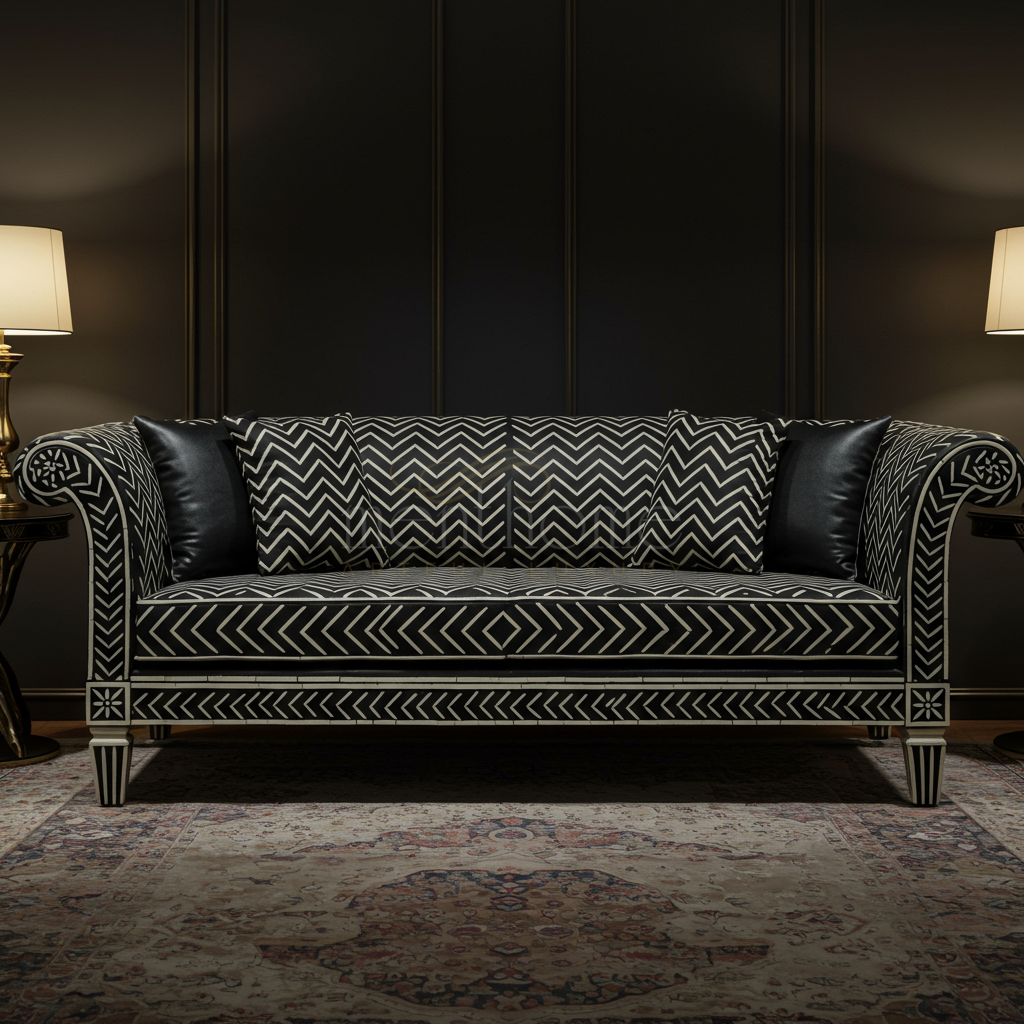 Luxurious Black Inlay Chevron Sofa | Luxury Handmade Sofa
