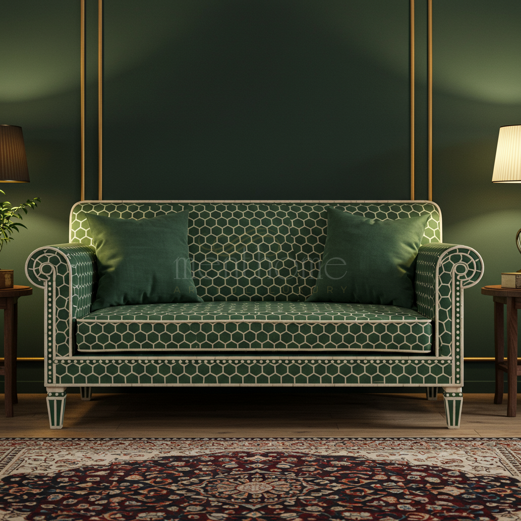 Luxury Green Inlay Sofa with Hexagonal Pattern | Luxury Handmade Sofa