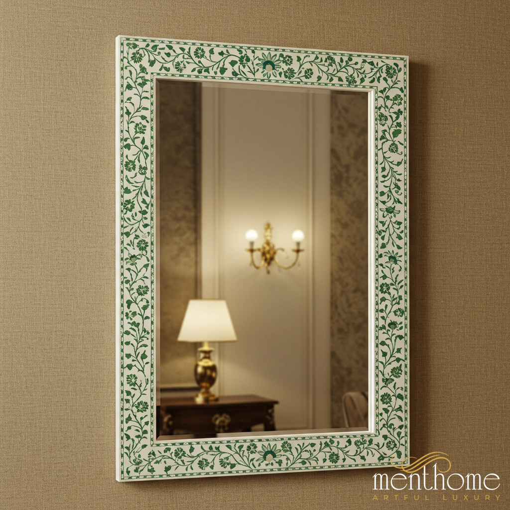 تتميز هذه المرآة الجدارية الرائعة بنقشة زهور ساحرة بلون أخضر نابض بالحياة، مما يضفي لمسة من الأناقة والرقي على أي غرفة. مثالية لمن يبحثون عن قطعة عملية تُضفي لمسة فنية على ديكور منزلهم.