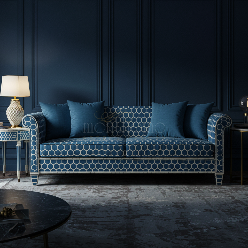 Luxury Blue Hexagonal Inlay Sofa | Luxury Handmade Sofa