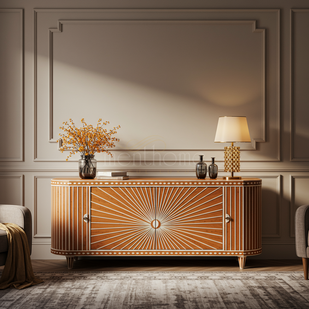 Luxury Inlay Sunburst Pattern TV Cabinet | Luxury Handmade TV Cabinet