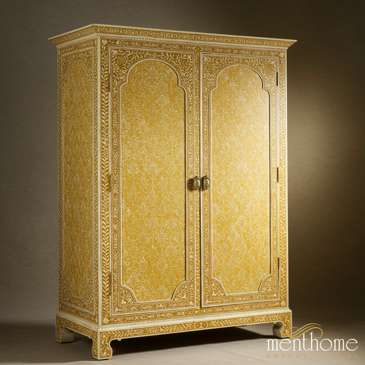 Transform your storage into a work of art with our bone inlay wardrobes and mother of pearl armoires, handcrafted to combine elegance with practicality. Each wardrobe is meticulously made by skilled artisans who embed intricate inlay patterns into premium wood, creating a luxurious centerpiece for your bedroom. With generous compartments, hanging space, and sturdy construction, these wardrobes are designed to keep your belongings organized while elevating your interior décor. By choosing our inlay wardrobe collection, you embrace ethical luxury, supporting artisan communities with fair wages and sustainable practices, while enjoying customizable designs, lasting durability, and customer-first service.
