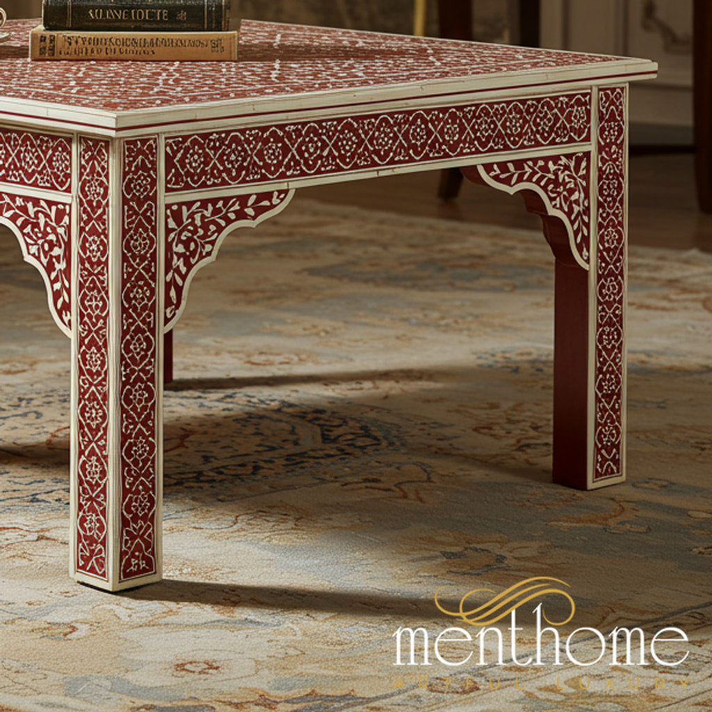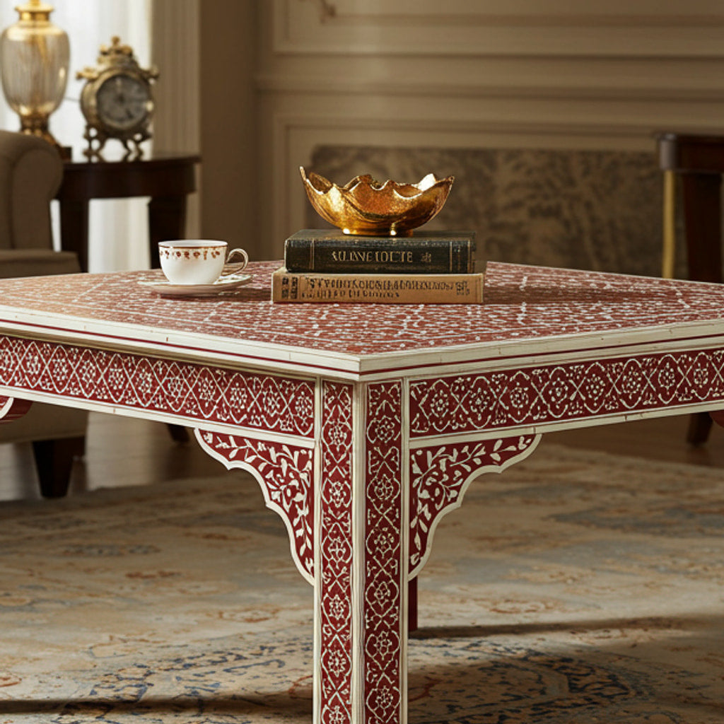 Handcrafted Red and White Inlaid Coffee Table | Luxury Handmade Coffee Table