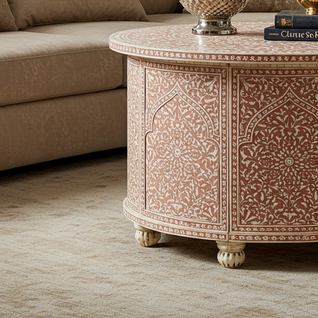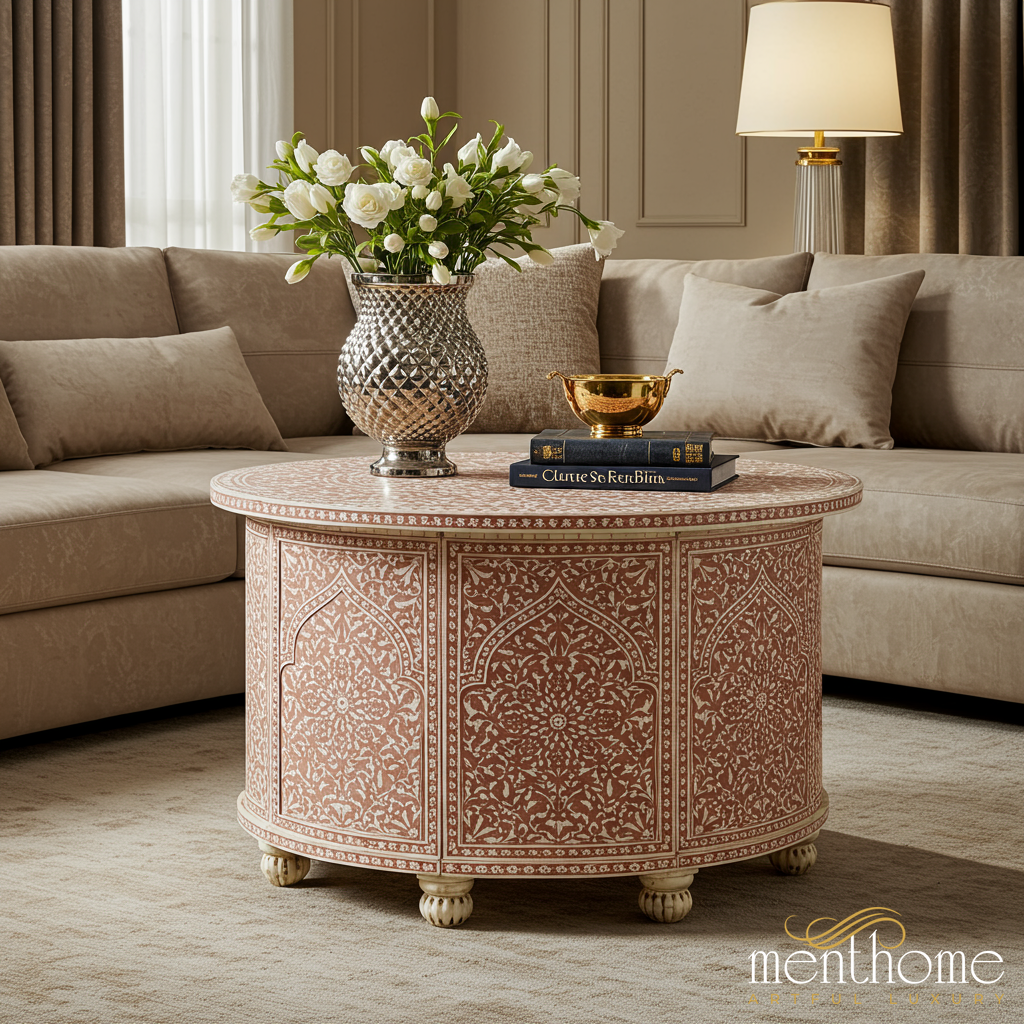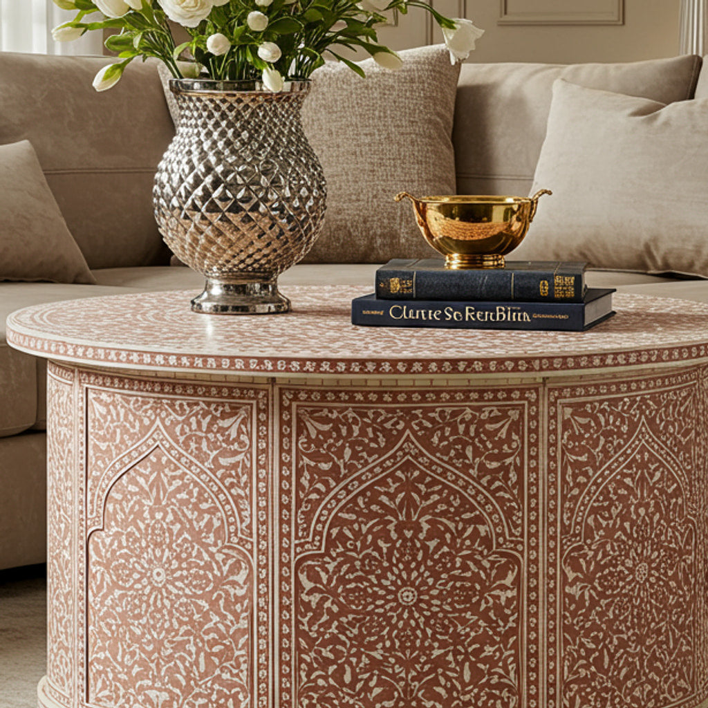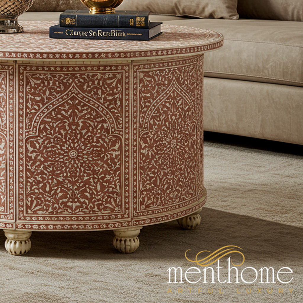 Handcrafted Round Floral Carved Coffee Table | Luxury Handmade Coffee Table