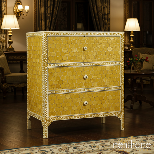 Handcrafted Yellow Inlay Three-Drawer Dresser | Luxury Handmade Chest of Drawer