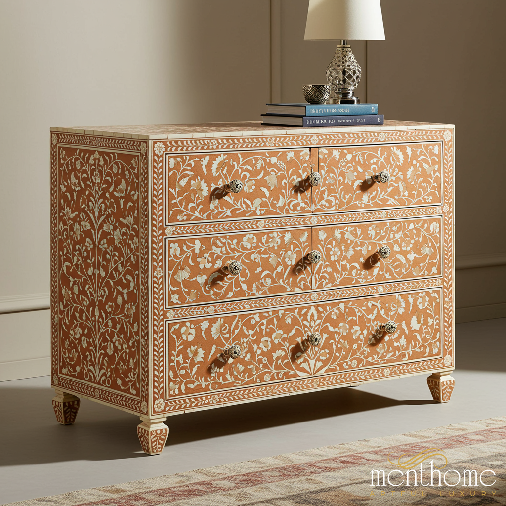 Handcrafted Floral Pattern Wooden Chest of Drawers | Luxury Handmade Dresser