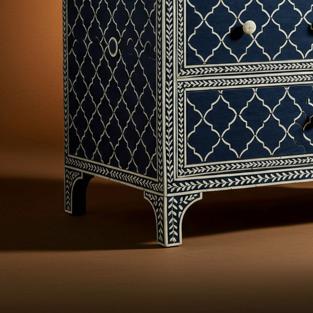 Handcrafted Bone Inlay Blue Chest of Drawers | Luxury Handmade Chest of Drawer