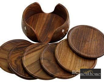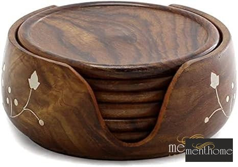 Wooden Round Drink Coasters Set of 6 with Decorative Holder | Luxury Handmade Decor