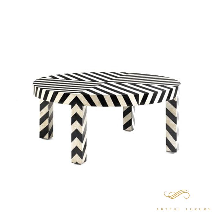 Zebra Coffee Table Bone Inlay Stripe Design | Luxury Handmade Coffee Table