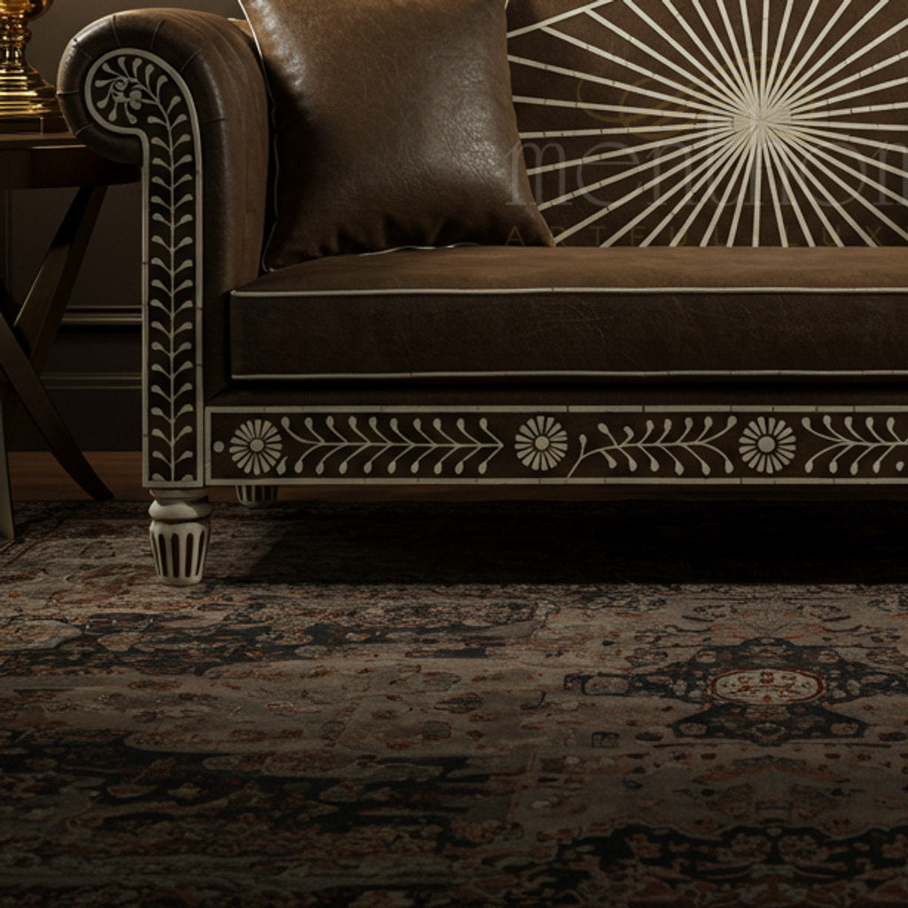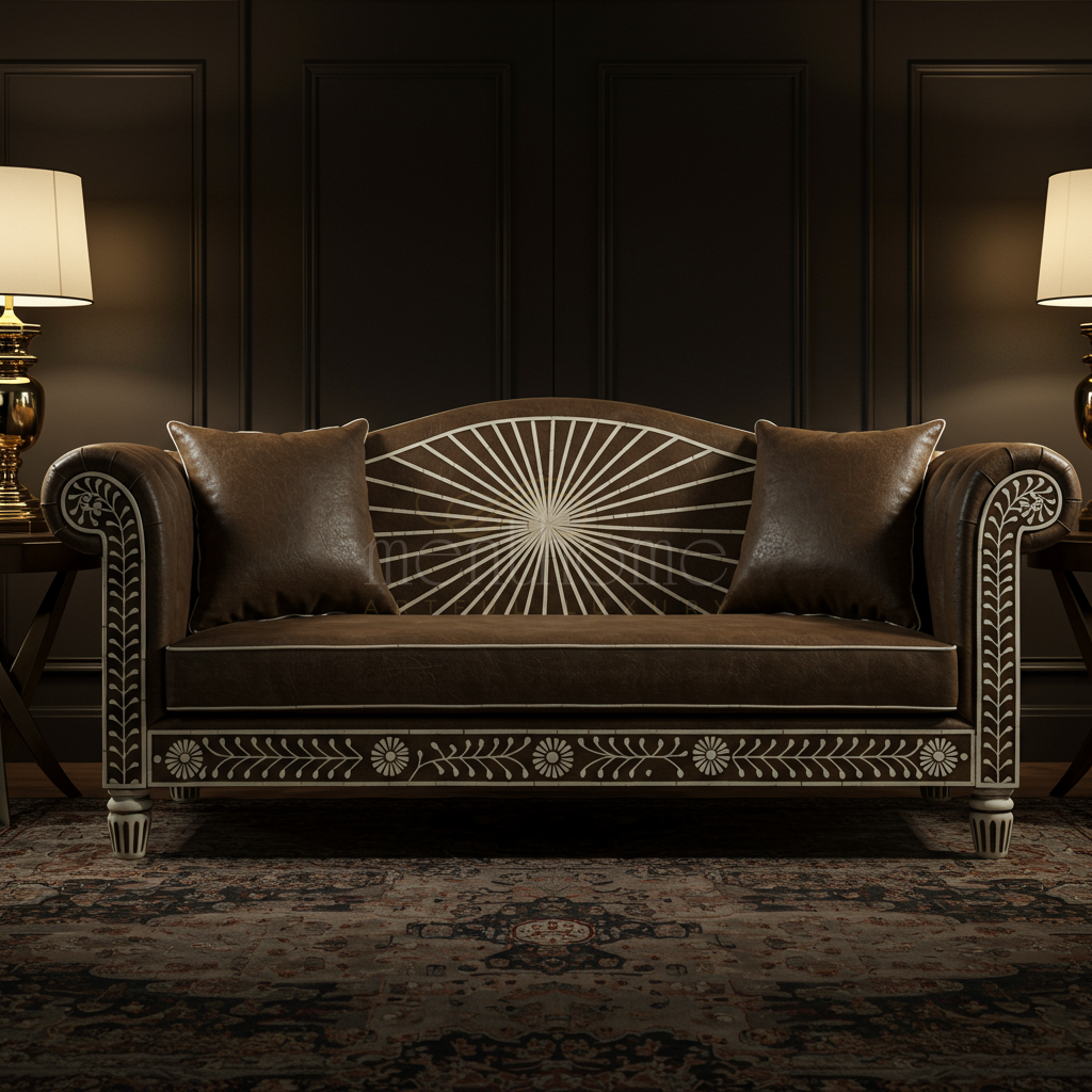 Elegant Inlay Brown Leather Sofa | Luxury Handmade Sofa