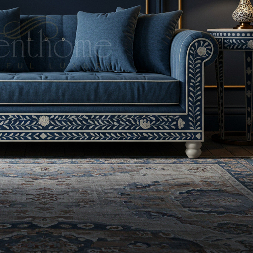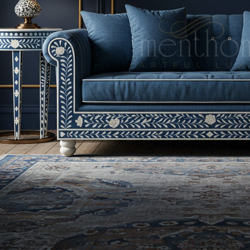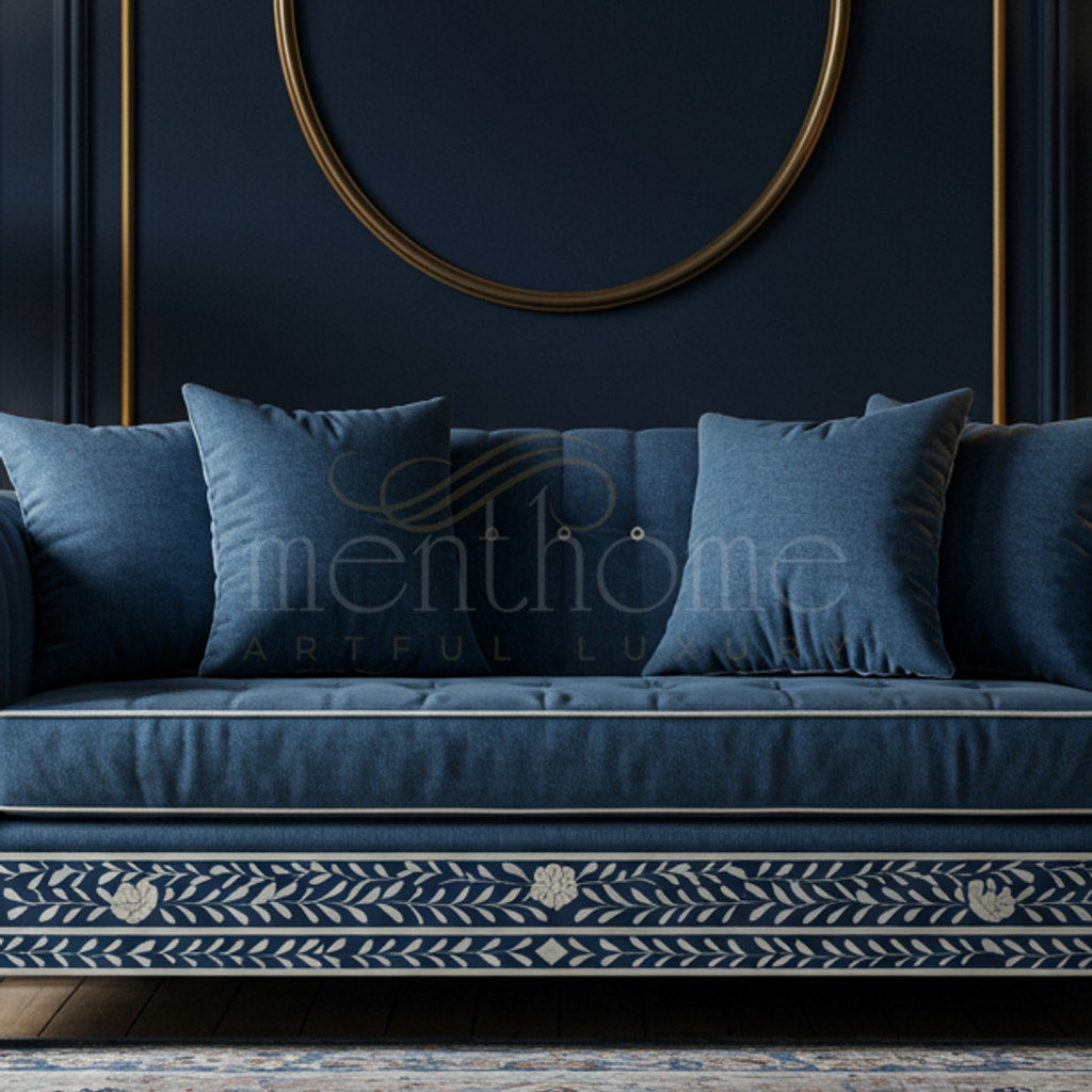 Luxury Inlay Blue Sofa with Floral Design | Luxury Handmade Sofa