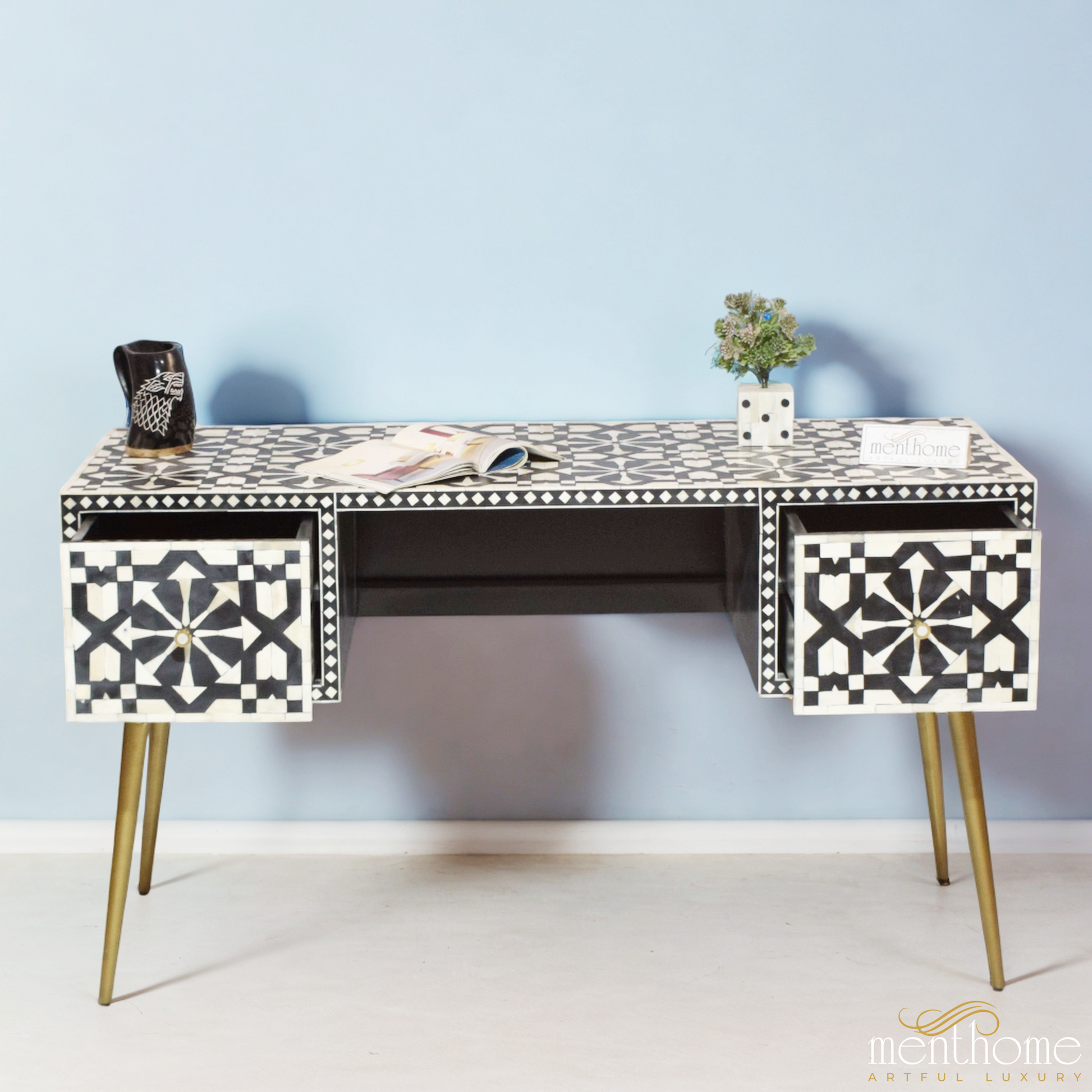Black Bone Inlay 2-drawers Moroccan desk | Luxury Handmade Desk