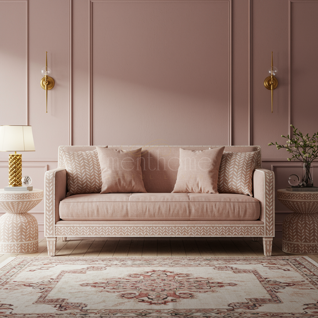 Elegant Blush Pink Inlay Sofa | Luxury Handmade Sofa