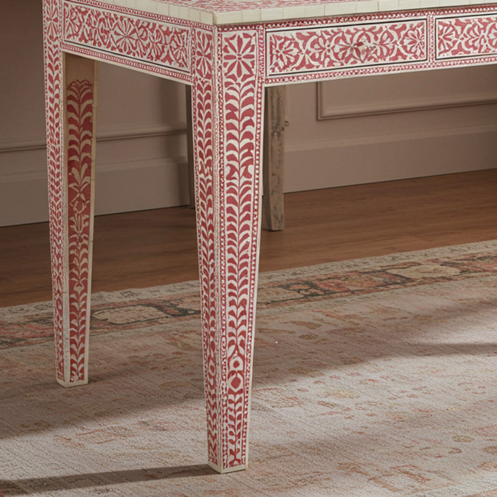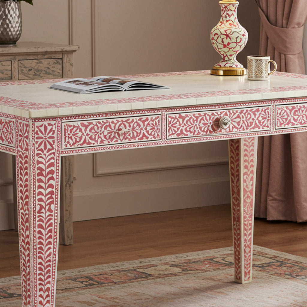 Handcrafted Red and White Bone Inlay Desk | Luxury Handmade Desk