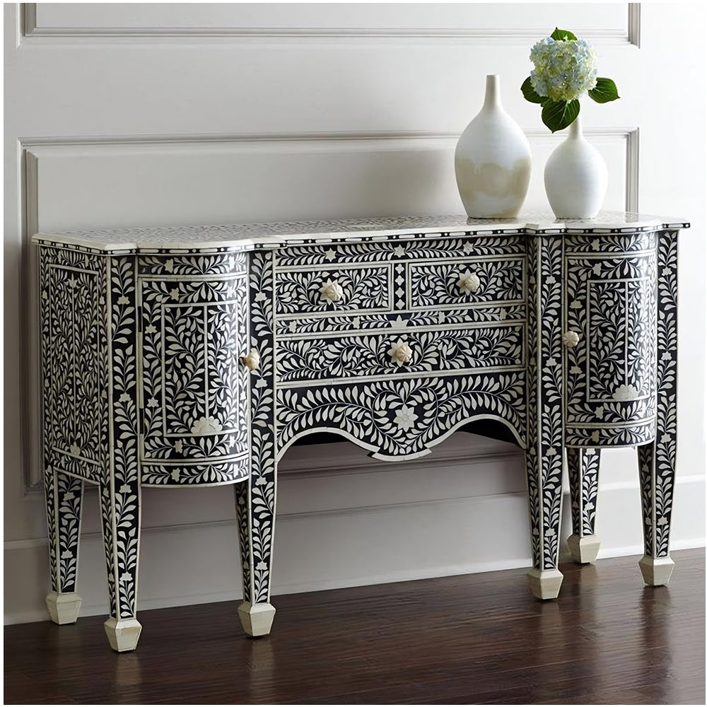 \n\n\nBRAND: Menthome\n\n\n\nART-TYPE: Bone/MOP Inlay Wooden Furniture\n\n\n\nMATERIAL: MDF, Bone, Wood, Iron Stand where applicable\n\n\n\nDIMENSIONS: All Dimensions are in Inches. Please send us a message for custom Sizes and Colors\n\n\n\n\n\nCOLOR: Selected from the options. Contact us for custom orders.\n\n\n\nProcessing Time: 15 - 20 Working Days\n\n\n\nDelivery Time: 5 - 10 Working Days (Customs processing adds extra days)\n\n\n\nNote:\n\n