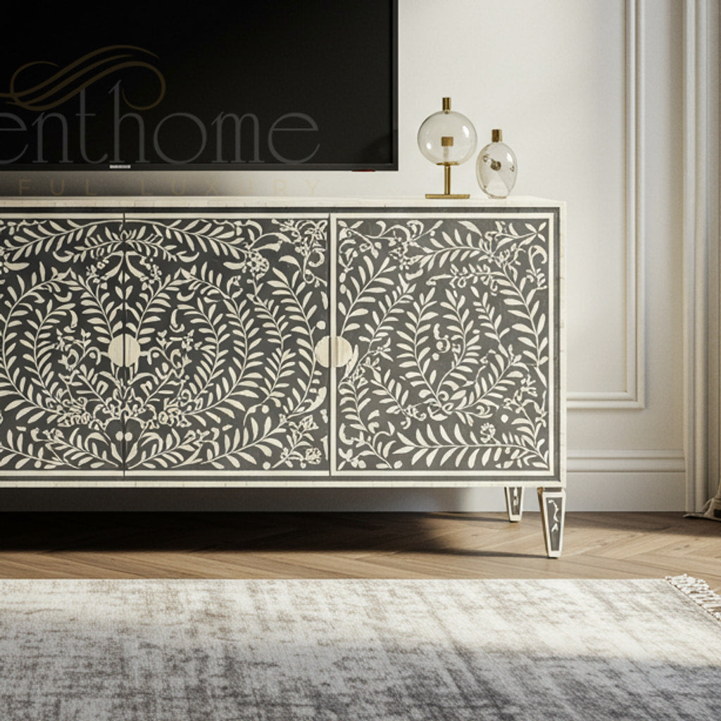Luxury Inlay TV Cabinet with Intricate Floral Design | Luxury Handmade TV Cabinet
