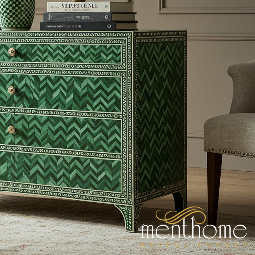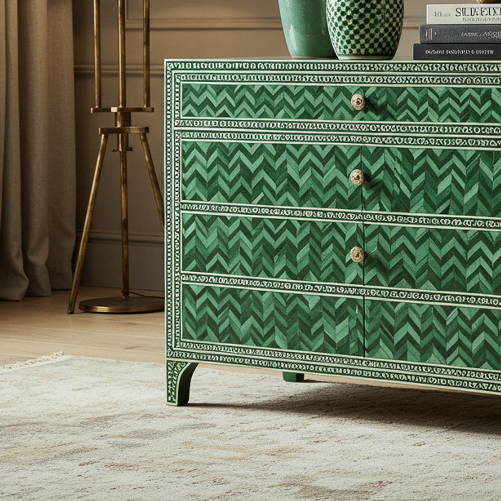 Handcrafted Green Inlay Chest of Drawers | Luxury Handmade Chest of Drawer