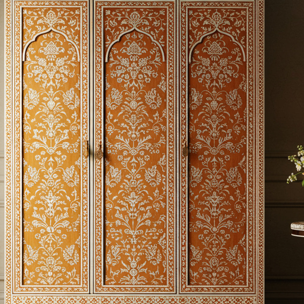 Ornate Handcrafted Wooden Wardrobe with Floral Inlay | Luxury Handmade Wardrobe