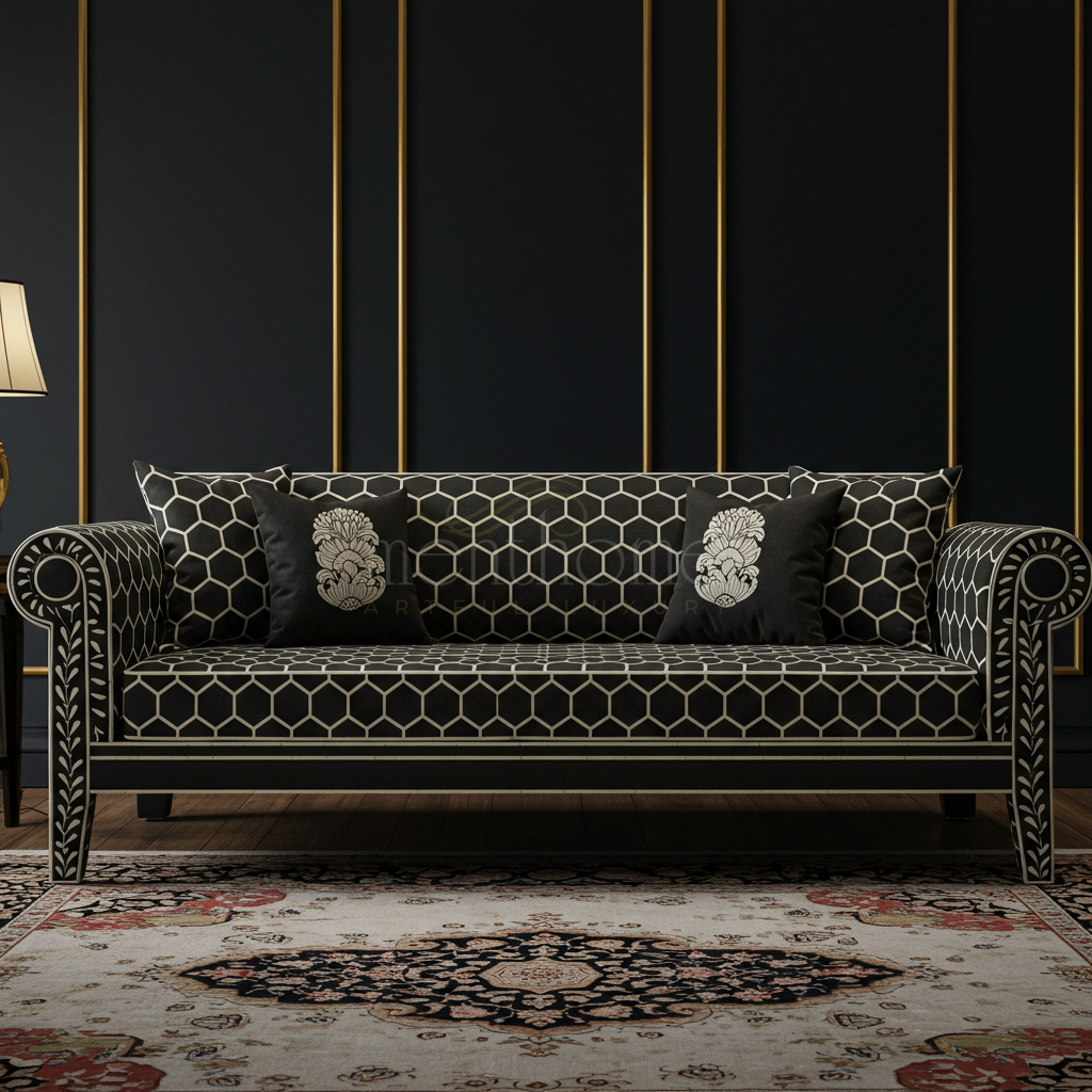 Luxury Black and Gold Inlay Sofa | Luxury Handmade Sofa