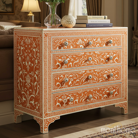 Elevate your interiors with our bone inlay chest of drawers and mother of pearl dressers, where timeless artistry meets everyday utility. Each piece is meticulously handcrafted by artisans who skillfully arrange delicate inlay patterns into durable wood, creating furniture that is both functional and decorative. With spacious drawers for organized storage and designs that double as statement décor, these chests are perfect for bedrooms, living rooms, or hallways. Every purchase supports artisan communities through fair wages and sustainable practices, while our focus on premium craftsmanship, customizable designs, and dedicated customer service ensures your chest of drawers is as meaningful as it is luxurious.