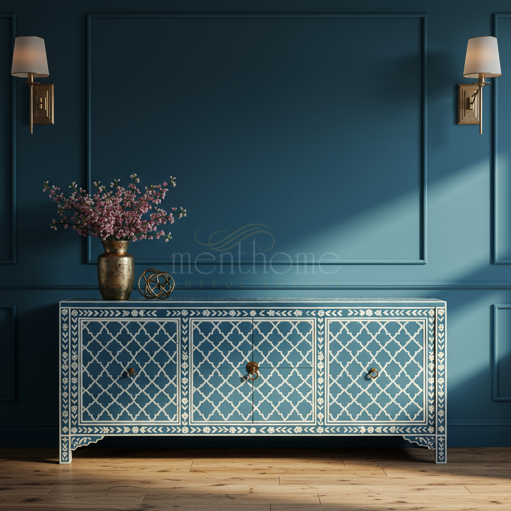 Inlay Blue Moroccan Pattern TV Cabinet | Luxury Handmade TV Cabinet