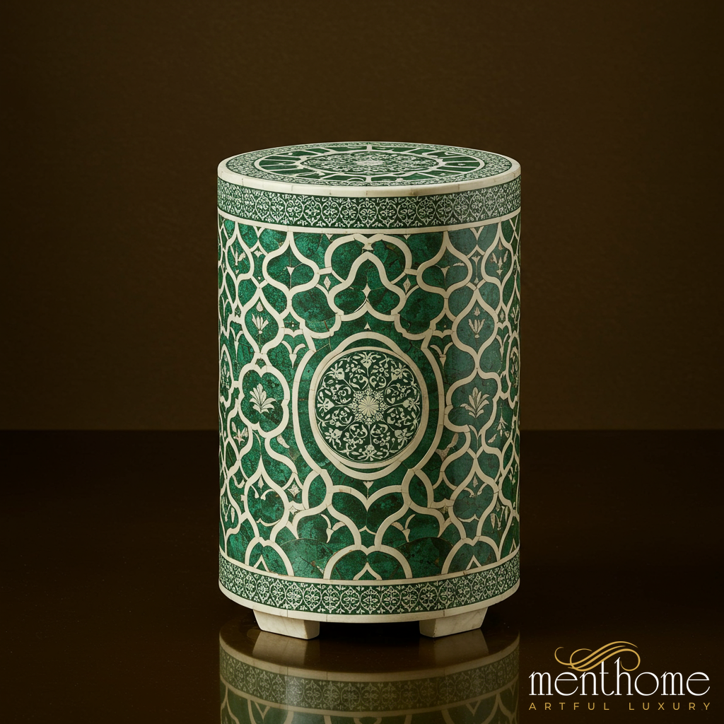 Jade Vine Traditional inlay Stool | Luxury Handmade Side Table