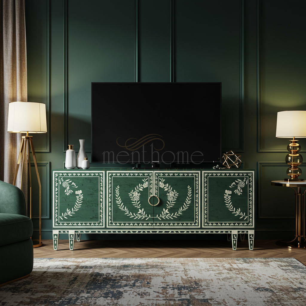 Luxury Inlay Green Floral TV Cabinet | Luxury Handmade TV Cabinet