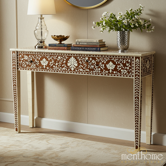 Elegant Handcrafted Bone Inlay Console Table | Luxury Handmade Console