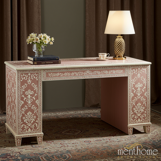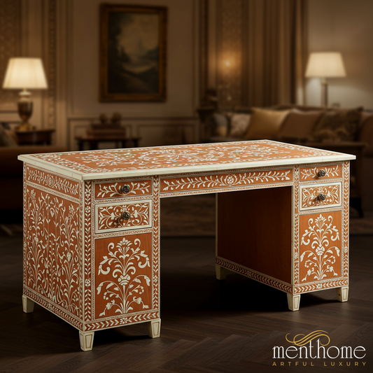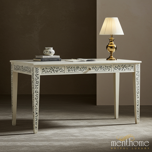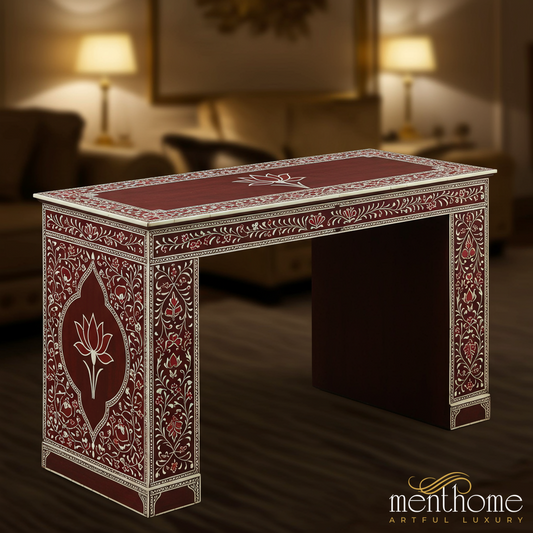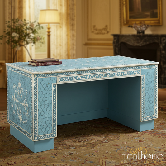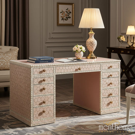 Elevate your workspace with our bone inlay desks and mother of pearl writing tables, handcrafted to combine functionality with timeless artistry. Each desk is meticulously inlaid by skilled artisans, creating intricate patterns that turn practical furniture into a statement piece. Designed for modern offices, home studies, or creative corners, these desks offer both durability and elegance, with ample surface space for work or décor. By choosing our inlay desk collection, you embrace ethical craftsmanship and sustainable luxury, supporting artisan livelihoods through fair wages while enjoying custom designs, premium quality, and exceptional customer care.