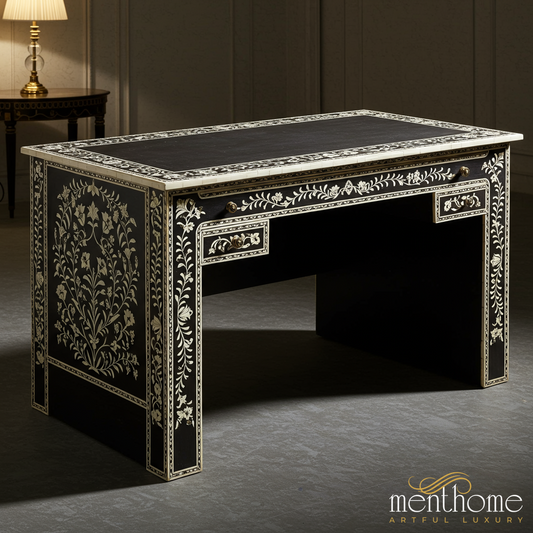 Elevate your workspace with our bone inlay desks and mother of pearl writing tables, handcrafted to combine functionality with timeless artistry. Each desk is meticulously inlaid by skilled artisans, creating intricate patterns that turn practical furniture into a statement piece. Designed for modern offices, home studies, or creative corners, these desks offer both durability and elegance, with ample surface space for work or décor. By choosing our inlay desk collection, you embrace ethical craftsmanship and sustainable luxury, supporting artisan livelihoods through fair wages while enjoying custom designs, premium quality, and exceptional customer care.
