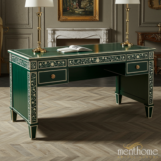 Bone Inlay Green Desk | Handcrafted Elegance | Intricate Design with Timeless Appeal | Perfect for Home or Office | Luxury Handmade Desk