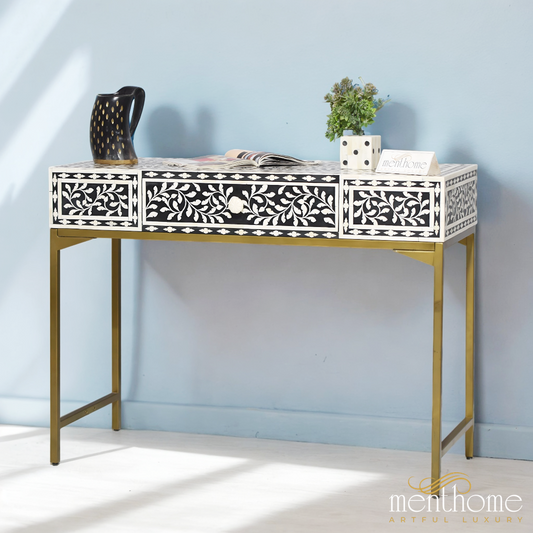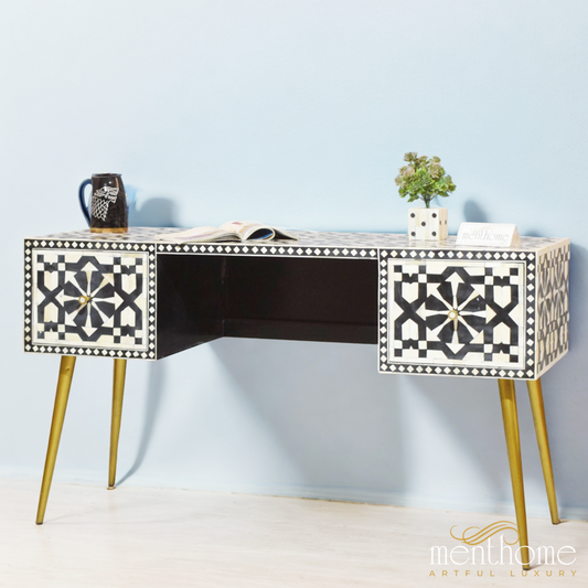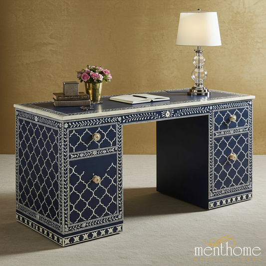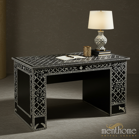 Elevate your workspace with our bone inlay desks and mother of pearl writing tables, handcrafted to combine functionality with timeless artistry. Each desk is meticulously inlaid by skilled artisans, creating intricate patterns that turn practical furniture into a statement piece. Designed for modern offices, home studies, or creative corners, these desks offer both durability and elegance, with ample surface space for work or décor. By choosing our inlay desk collection, you embrace ethical craftsmanship and sustainable luxury, supporting artisan livelihoods through fair wages while enjoying custom designs, premium quality, and exceptional customer care.