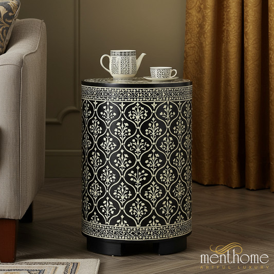 Add charm and versatility to any space with our bone inlay side tables and mother of pearl accent tables, handcrafted by skilled artisans using traditional inlay techniques. Compact yet eye-catching, these tables are perfect as corner pieces, sofa companions, or stylish display stands, bringing both function and artistic beauty to your home. Each design is unique, showcasing intricate patterns and polished finishes that reflect timeless craftsmanship. By choosing our side table collection, you invest in durable quality, customizable designs, and ethical luxury, while also supporting artisan communities with fair wages and sustainable practices.