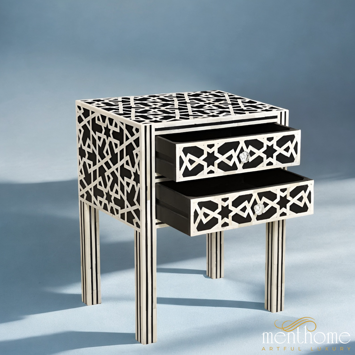 Black Spider Bedside Table Bone Inlay Handmade | Luxury Handmade Bedside Table