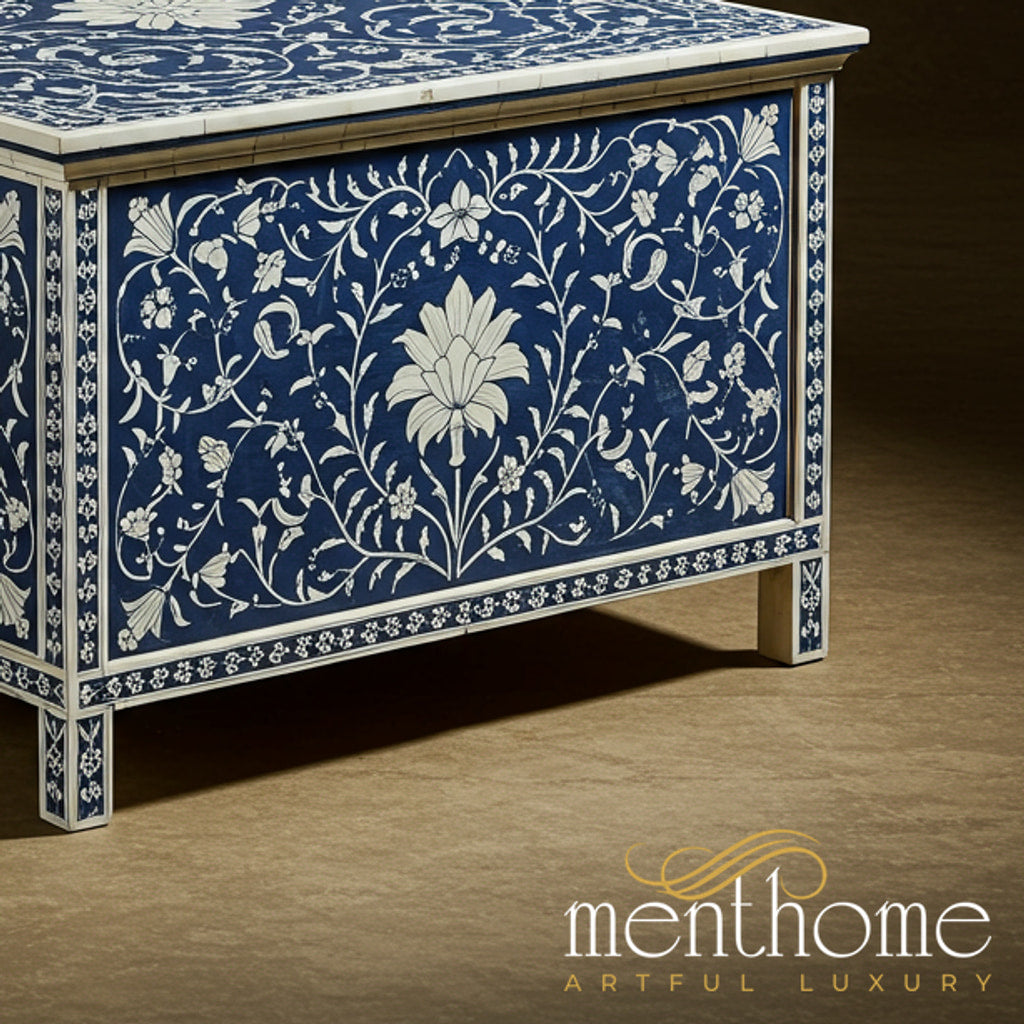Blue Floral Inlay Wooden Coffee Table | Luxury Handmade Coffee Table