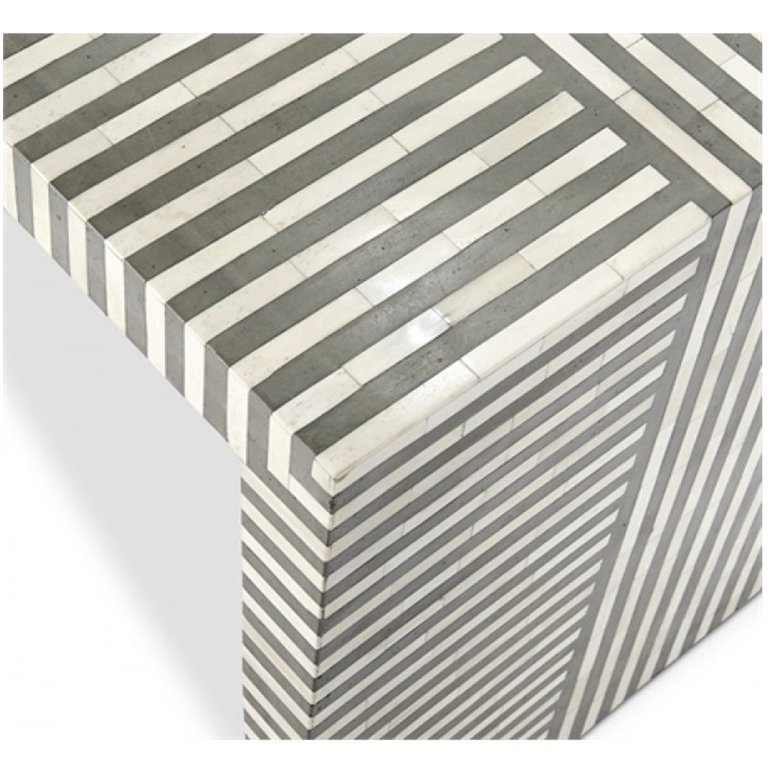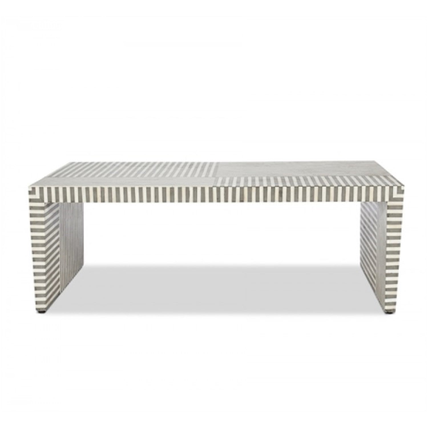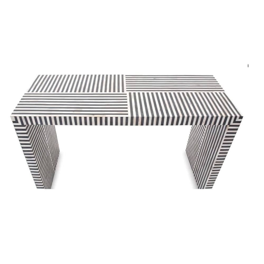 The offered Bone Inlay Coffee Table furniture is available in customized shades. This can be used in home interiors as well in restaurants, coffee shops, etc. Featuring a striking geometric pattern in black & white, this gorgeous offers both storage and style. The gorgeous combination of stripes has everlasting appeal and will create a relaxed elegance in your home. \n \nUsed for drinks, flowers, and is a general table for placing items. A modern coffee table for the central spot in your living room! A classy coffee table ties your living space together. \n \nBRAND: Menthome \n \nART-TYPE: Wooden Furniture \n \nMATERIAL: Wood \n \nDIMENSIONS: (L * W * H) = (24 x 16 x 16) inch \n \nWEIGHT: 20 Kg \n \nCOLOR: Gray, White \n \nPACKAGE CONTENT: 1 x Bone Inlay Coffee Table \n \nDelivery Time: Within 30-45 Working Days \n \nNote: \n