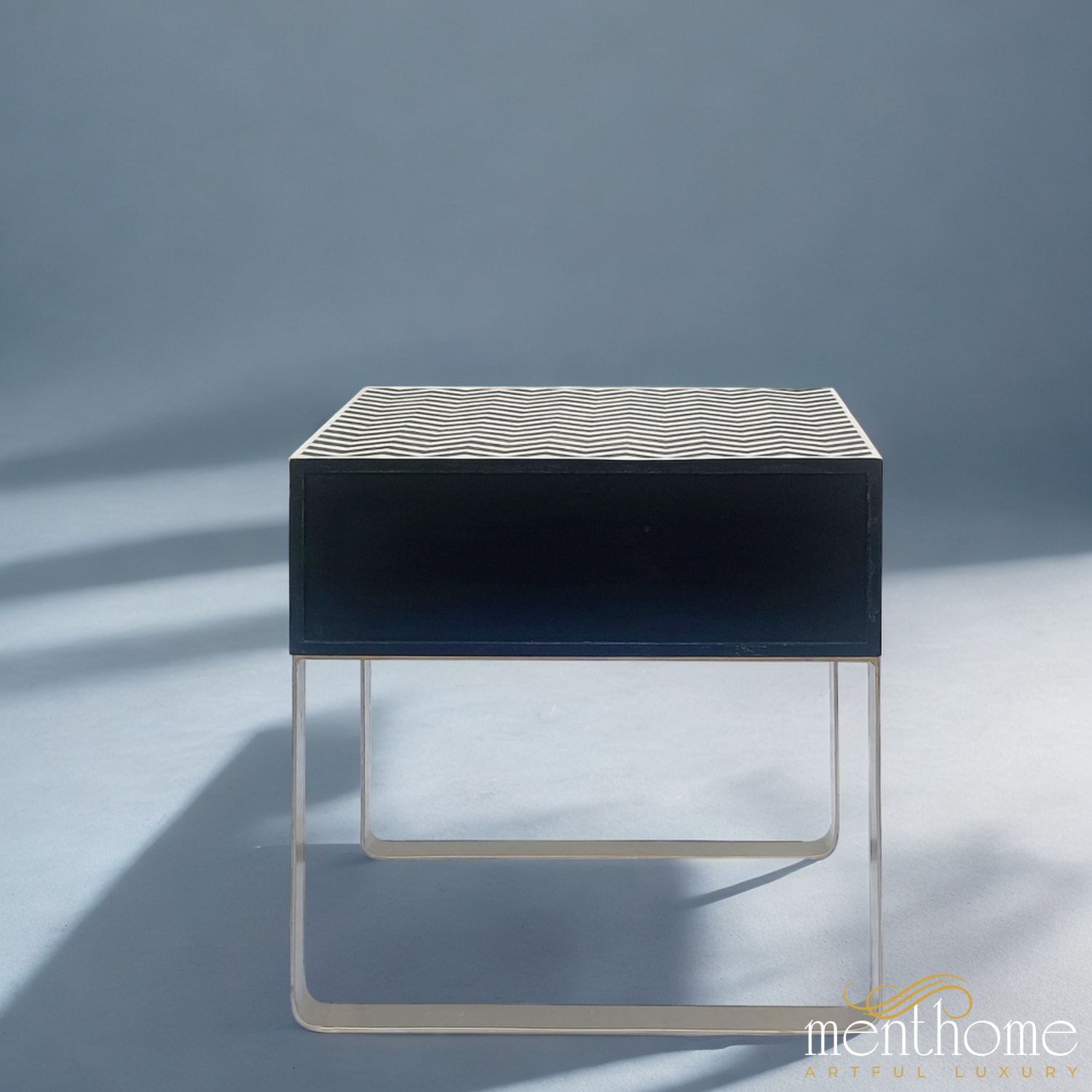Chevron Pattern Bedside Table with Metal Base | Luxury Handmade Bedside Table