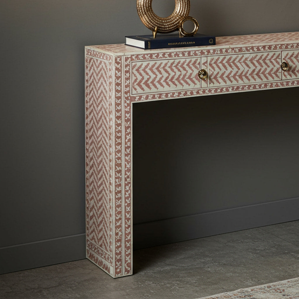 Handcrafted Bone Inlay Console Table | Luxury Handmade Console