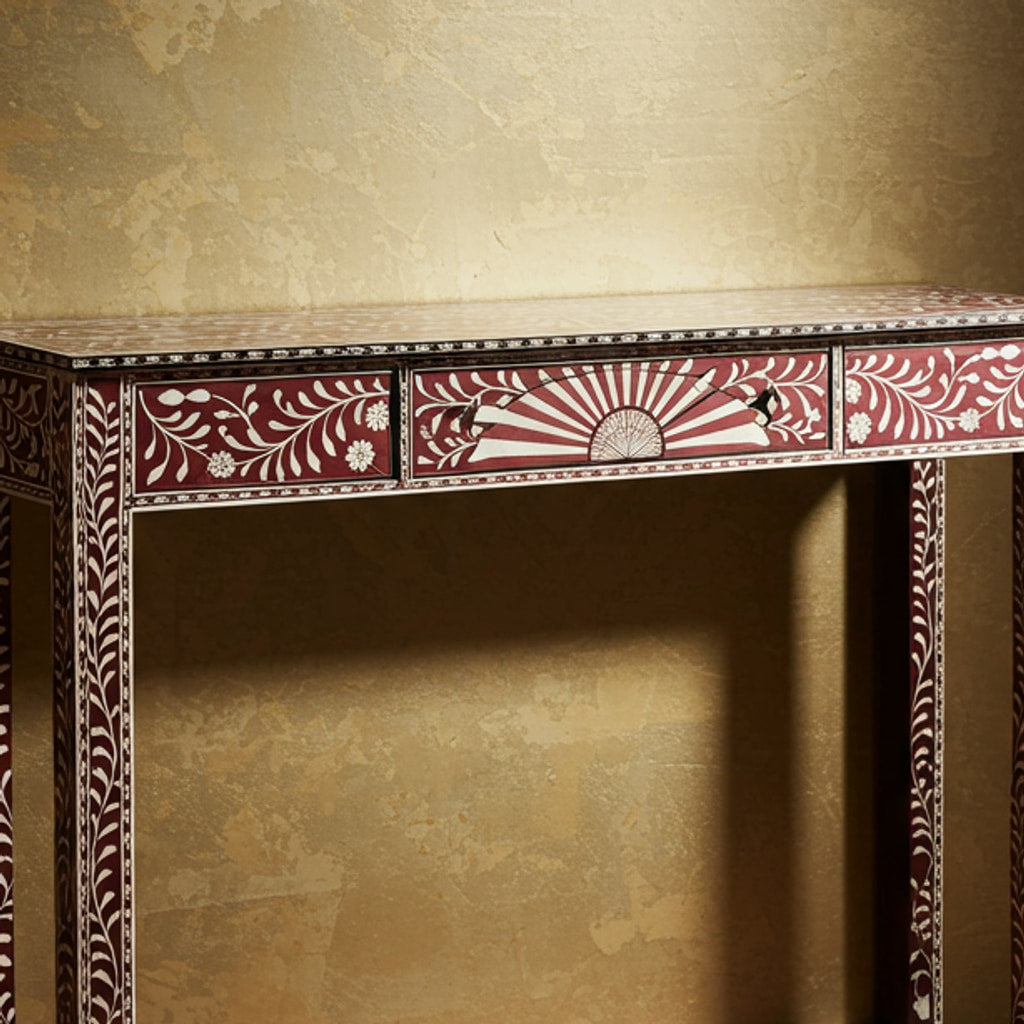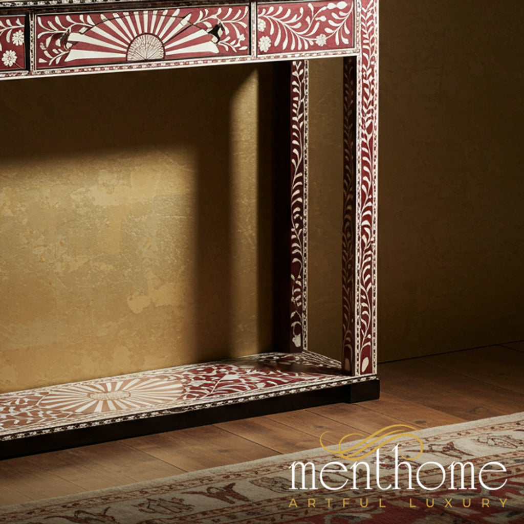 Handcrafted Red and White Bone Inlay Console Table | Luxury Handmade Console