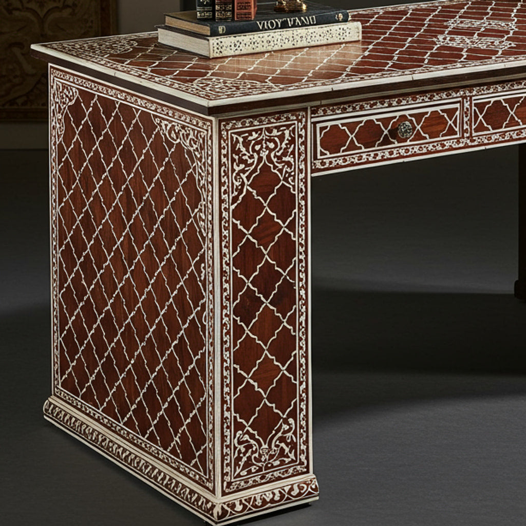 Handcrafted Wooden Desk with Intricate Inlay Design | Luxury Handmade Desk
