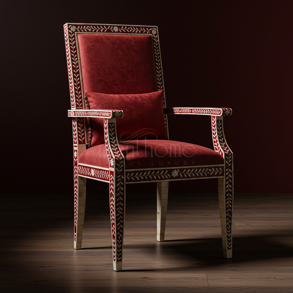 Inlay Chair with Red Velvet Upholstery | Luxury Handmade Chair