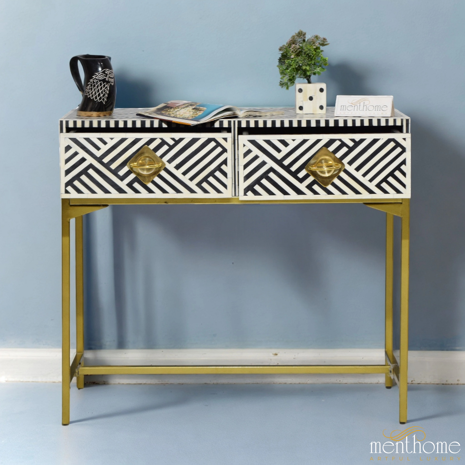 Optical Pattern 2 Drawers Bone Inlay Desk with Brass Leg | Luxury Handmade Desk